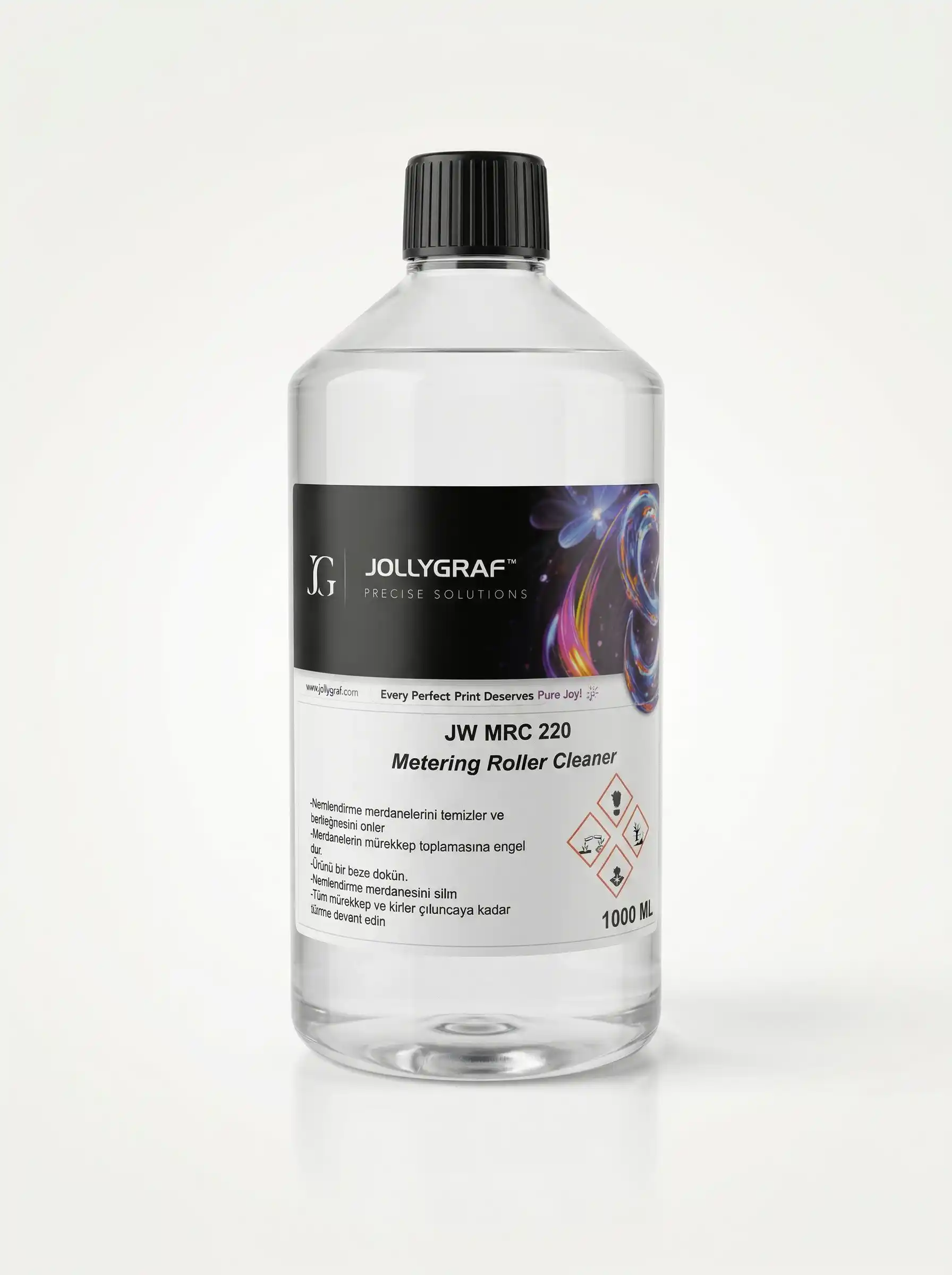 Nemlendirme merdanelerini temizlemek için konumlanmış bir temizleme maddesidir.